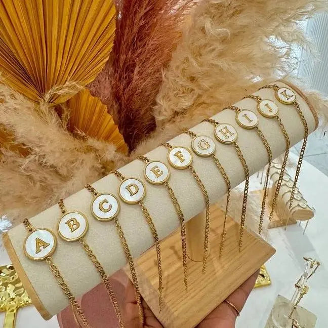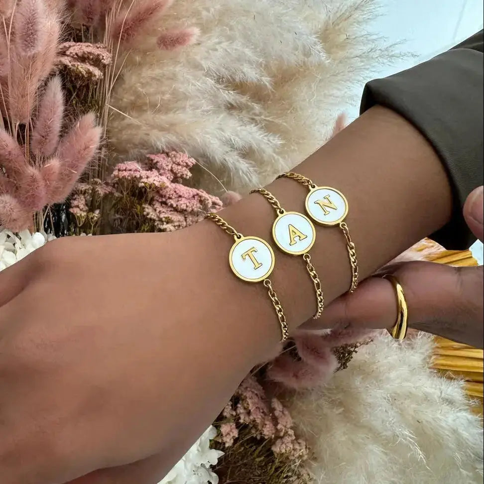 The Abalone Letter Bracelet is a delicate expression of individuality and elegance. Featuring a polished gold chain accented with a luminous abalone shell disc and a raised initial, this piece captures soft iridescent tones that shift beautifully with the light.
