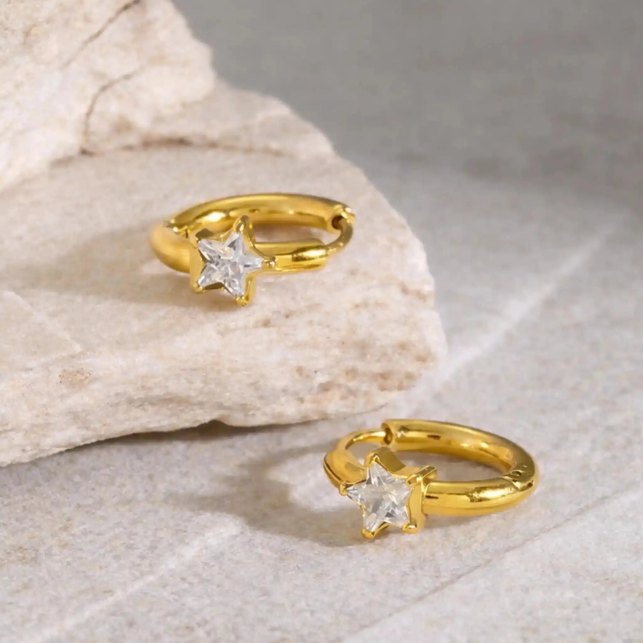 Designed for everyday comfort, these earrings sit close to the ear and feel effortlessly wearable from morning to night. The star detail adds a playful yet refined finish, making them perfect for stacking with other earrings or wearing alone as a subtle statement. Elegant, lightweight, and versatile, the Astral Spark Huggie Earrings are made for those who love understated sparkle with a cosmic twist.