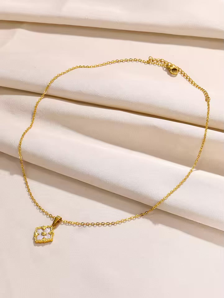 Delicate, feminine, and full of gentle charm — the Blossom Whisper Necklace captures the beauty of a quiet moment in bloom. The white shell petals glow softly against the golden frame, creating a pendant that feels like a tiny keepsake of warmth and tenderness.
