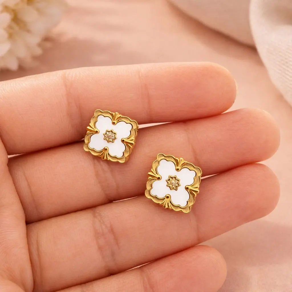 Lightweight yet striking, these studs add a refined touch to any outfit. Their gentle shimmer and ornate detailing make them perfect for those who adore feminine pieces with a dreamy, elevated finish.