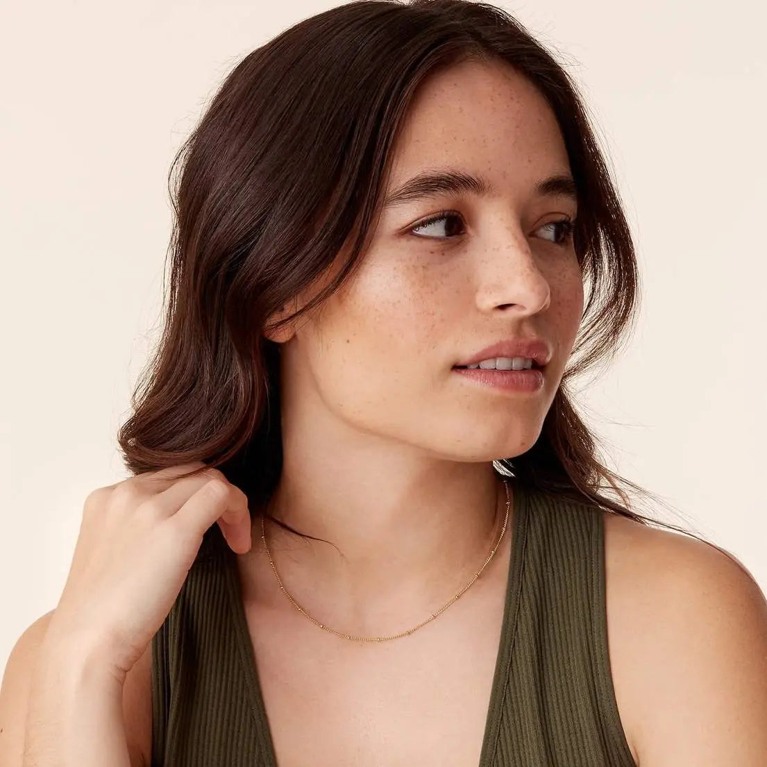 Soft, delicate, and effortlessly graceful — the Golden Whisper Chain is the kind of necklace that feels like a gentle touch against the skin. Its tiny, evenly spaced beads glimmer softly with every movement, adding a quiet romantic glow to any look.