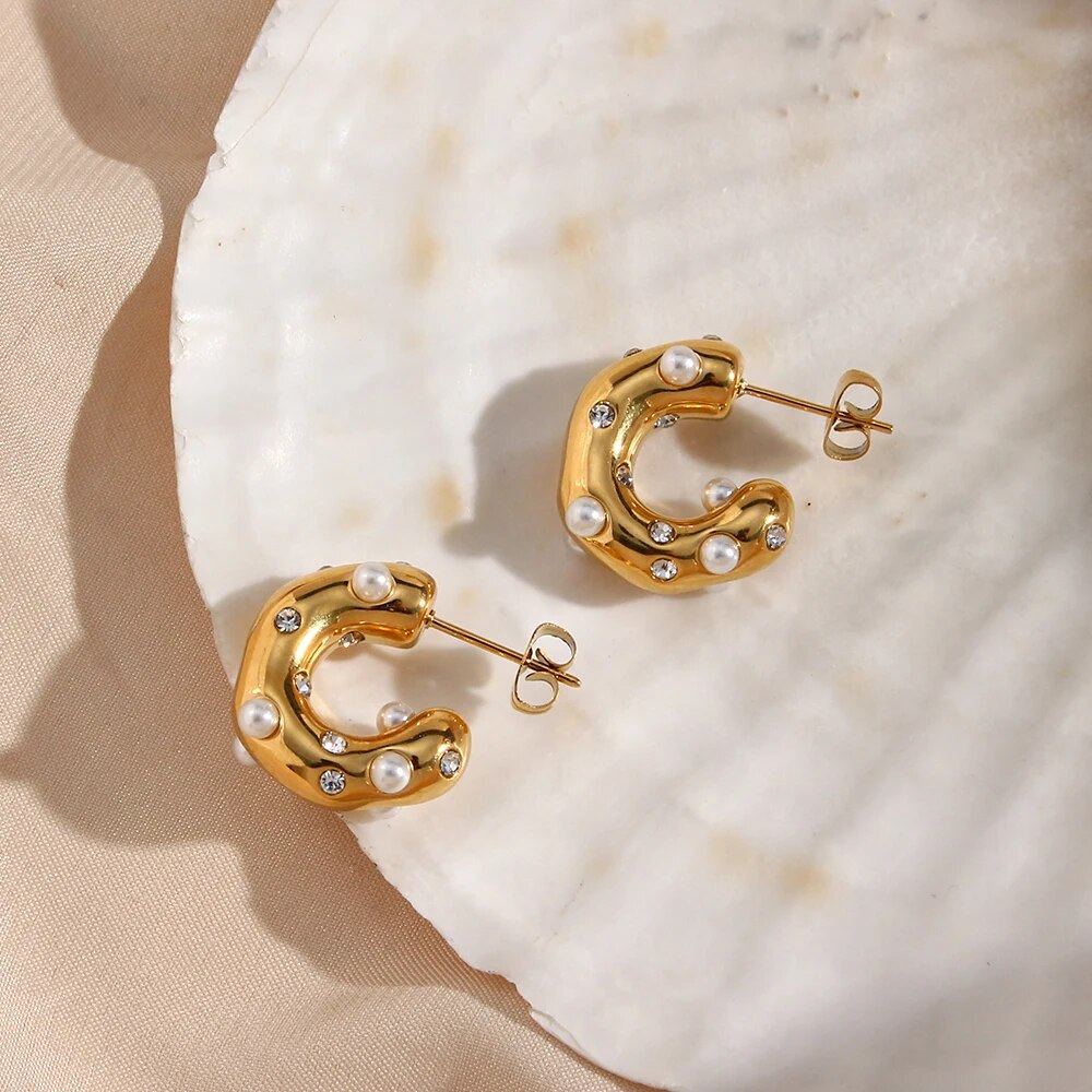 Introducing our Helene Gold-Plated Earrings with Pearls, a stunning amalgamation of classic elegance and modern refinement. These handcrafted earrings exude timeless charm, featuring lustrous pearls renowned for their enduring beauty, elegantly set within a modern gold-plated frame. This exquisite combination effortlessly transitions from day to night, making it the perfect accessory for any occasion.