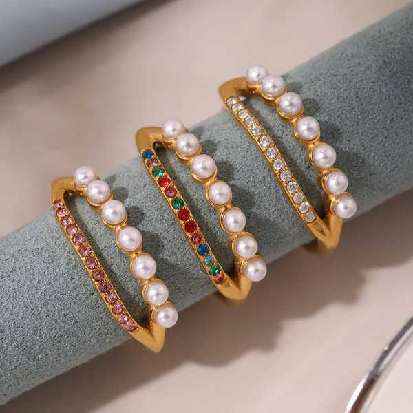 Material: 304 Stainless Steel, PVD, Zircon, Faux Pearl